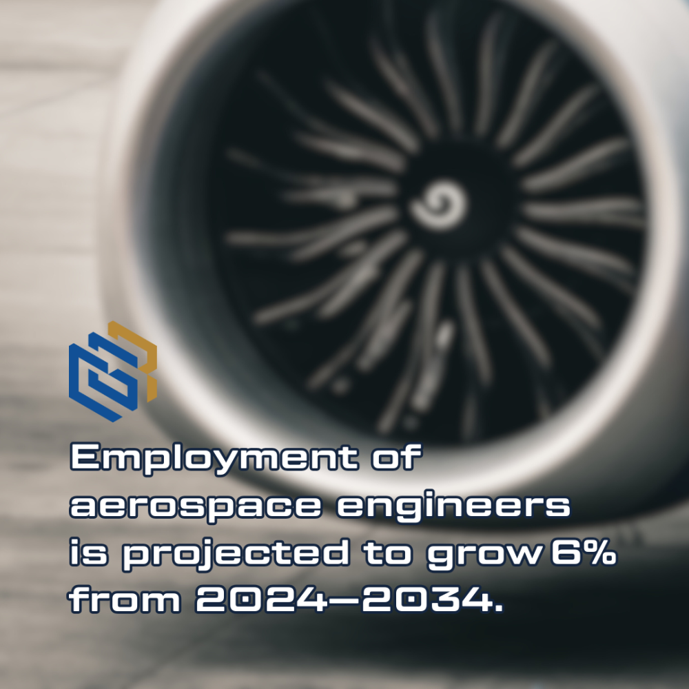 Employment of aerospace engineers is projected to grow 6% from 2024-2034, faster than the average for all occupations (U.S. Bureau of Labor Statistics, 2024a).